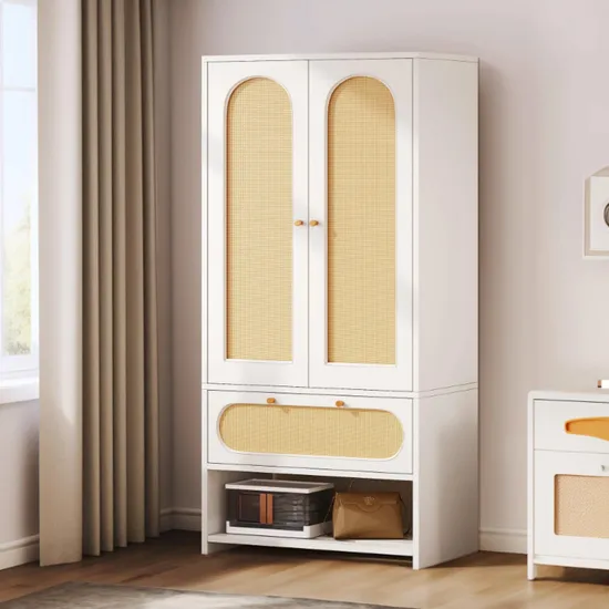 Home » Products » Indoor Furniture » Bedroom furniture » Wardrobes » Hinged Door Metal Handle Modern Wardrobe 1 Drawer 2 Shelves Wardrobes