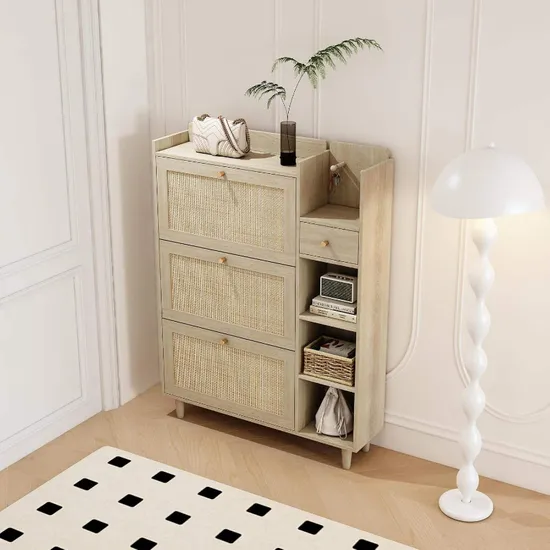 Home » Products » Indoor Furniture » Entrance hall furniture » Shoe Racks » Modern Floor Standing 4-Tier MDF Shoe Storage Cabinet Custom Color Shoe Racks
