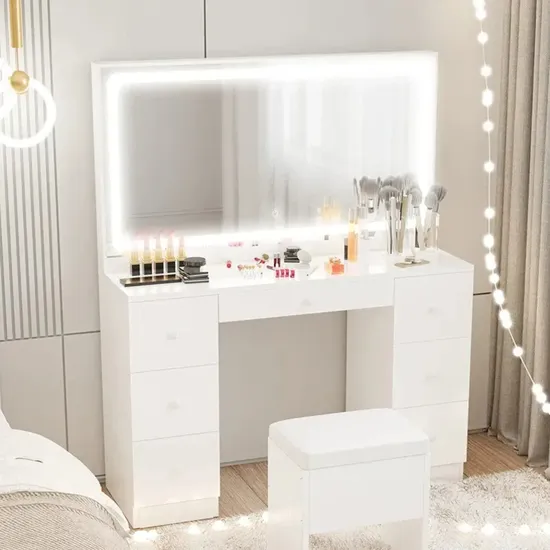 Home » Products » Indoor Furniture » Bedroom furniture » Dresser » Storage Cabinet Lighted Mirror Vanity Modern Particle Board Wood Makeup Vanities